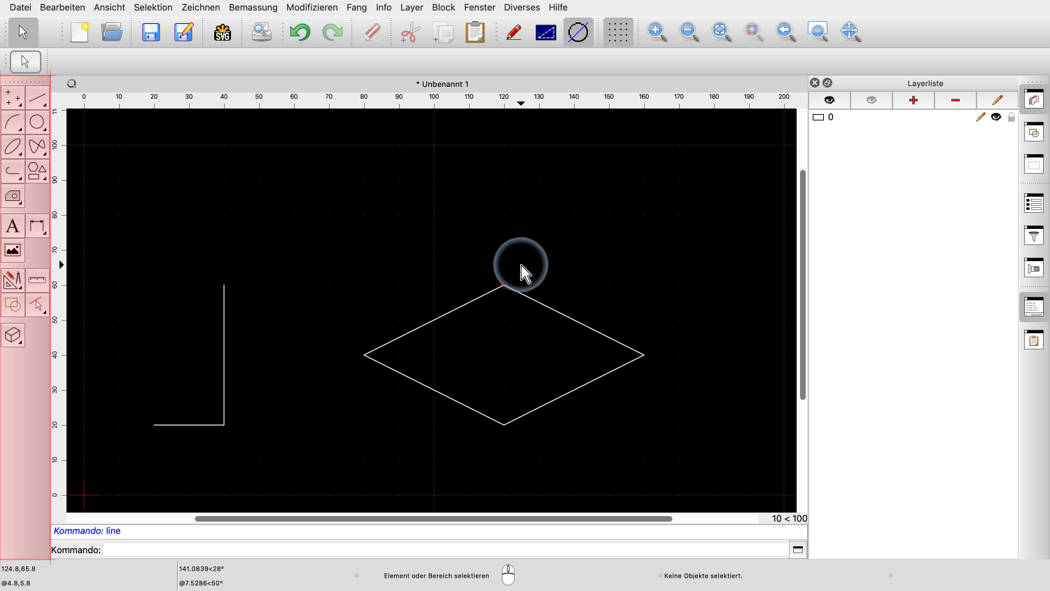 Jeder Klick fügt nun eine neue Linie in die Zeichnung ein.