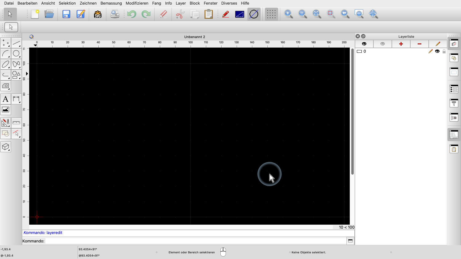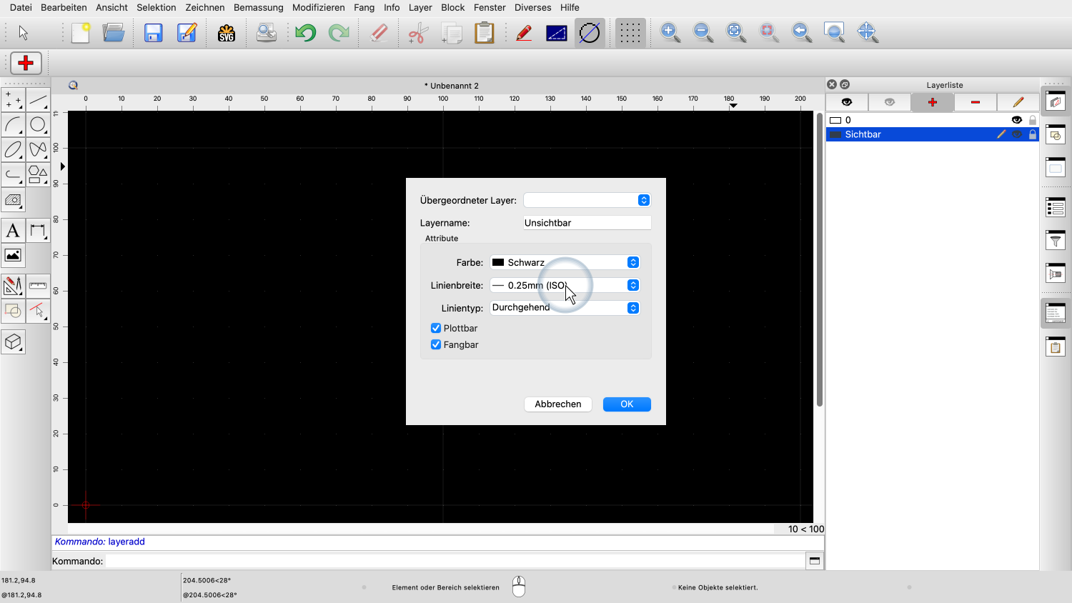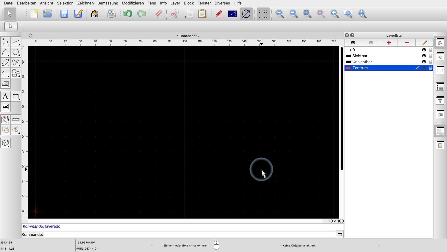Wie allgemein empfohlen, lassen wir Layer 0 leer und erstellen unsere eigenen Layer für unsere Zeichnung.