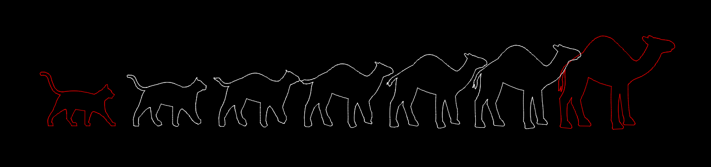 If the two polylines have a different number of segments, a different approach is applied which can lead to a distortion at sharp corners as shown in this example (note the left bottom border being distorted while morphed):