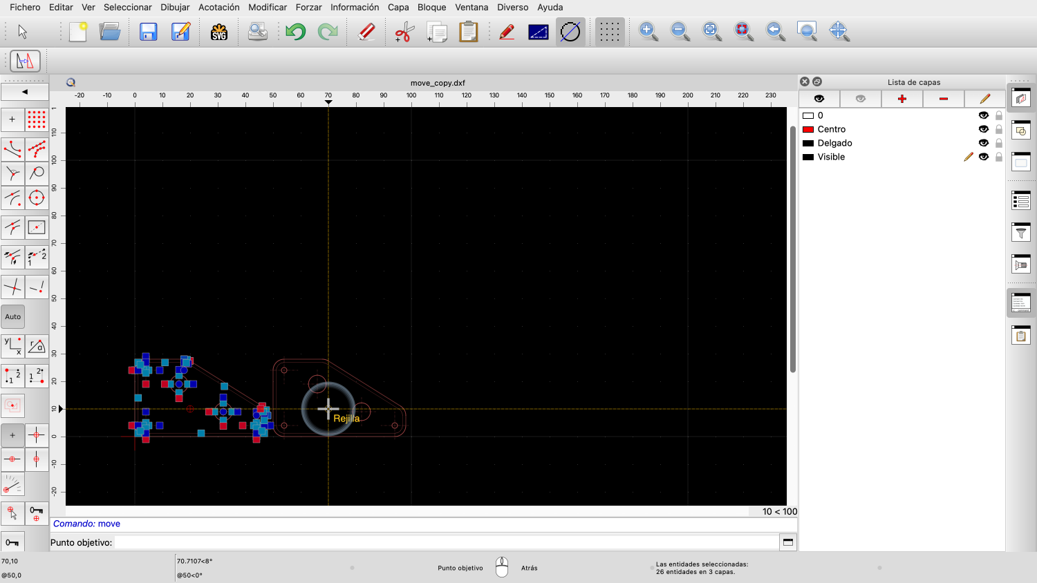 En este ejemplo, le decimos a QCAD qué entidades deben ser movidas o copiadas.