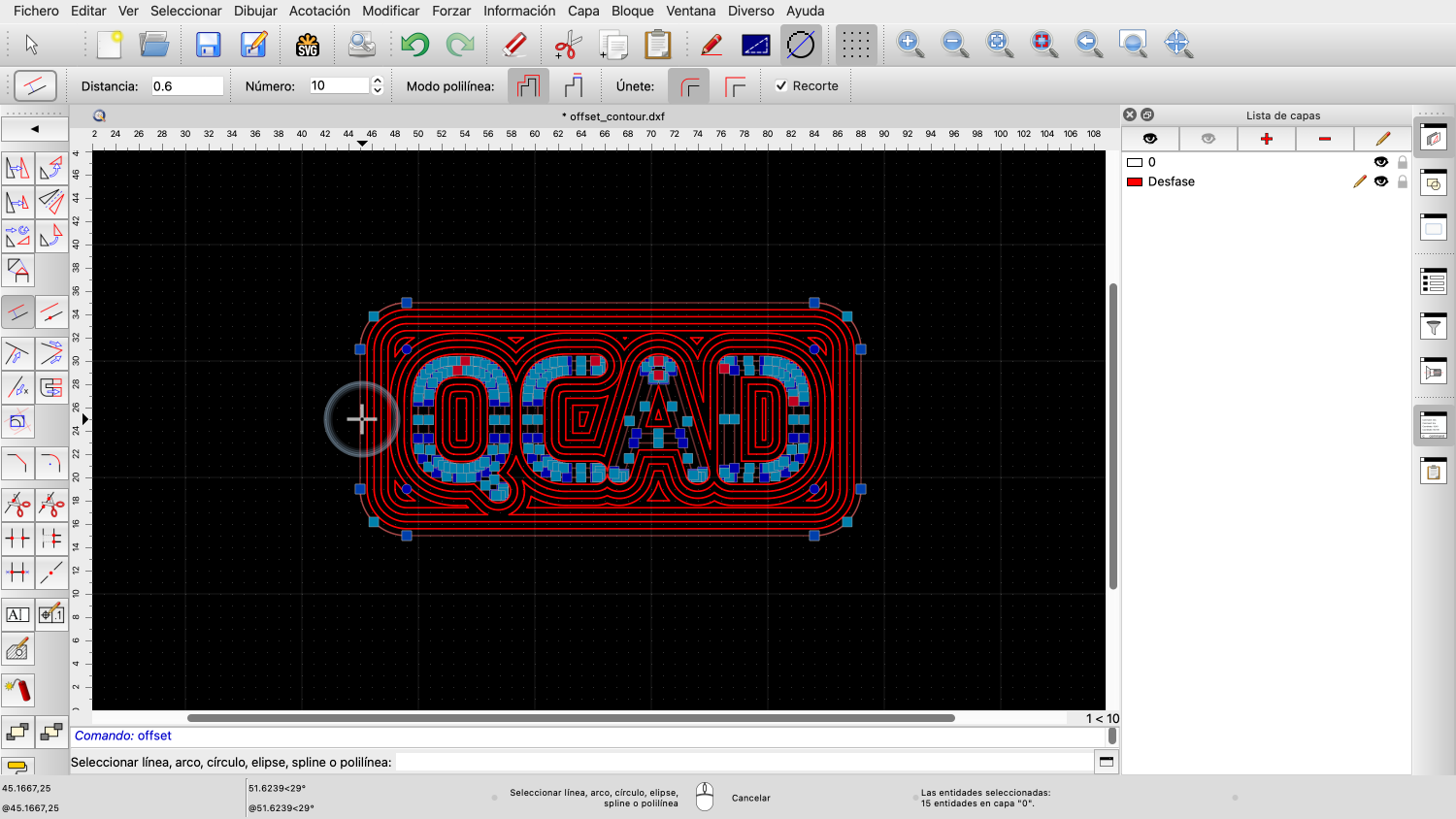 QCAD dejará automáticamente de crear desfases cuando no haya más desfases posibles.