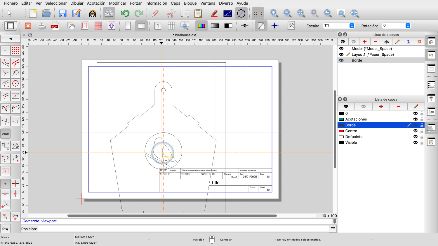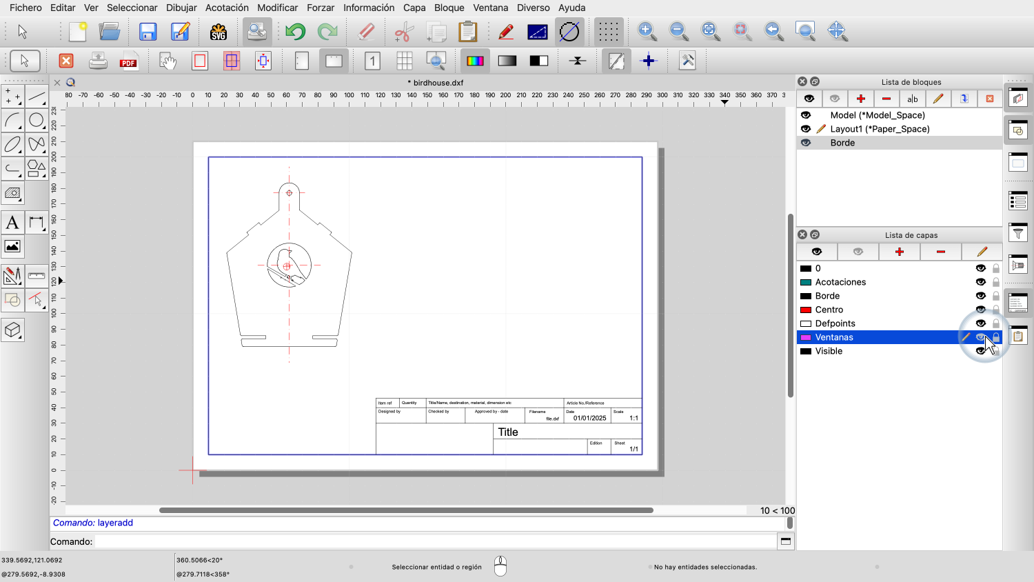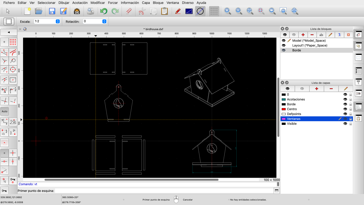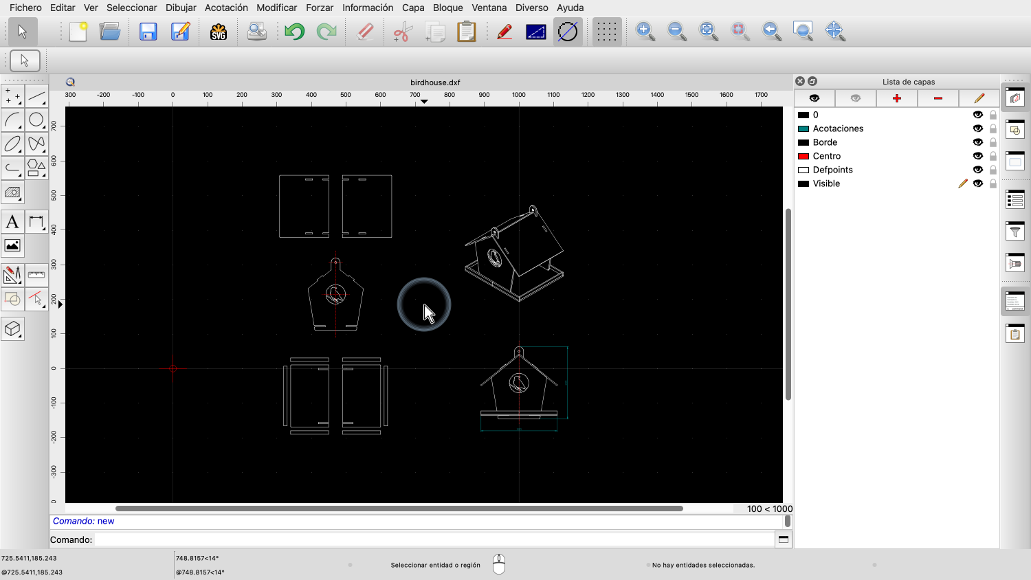 Ejemplo de dibujo: birdhouse.dxf