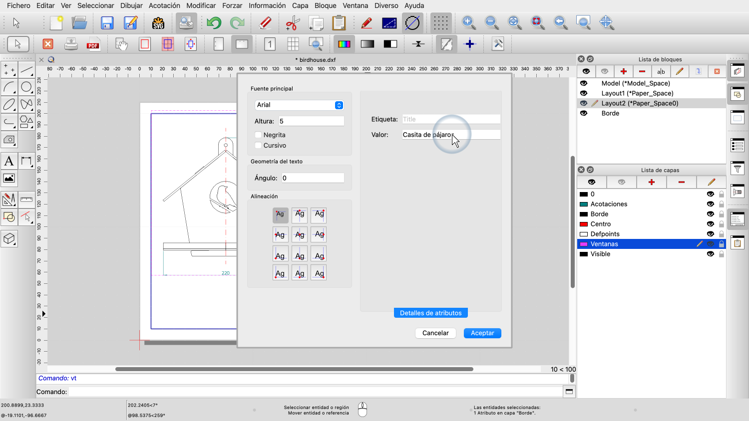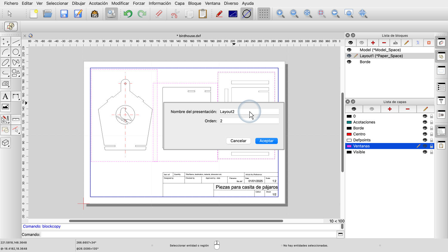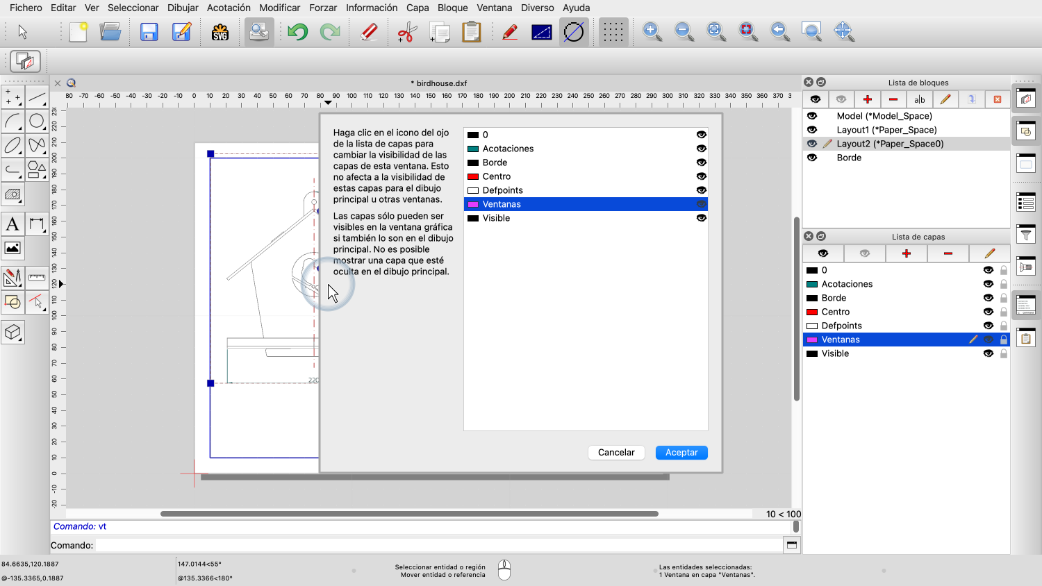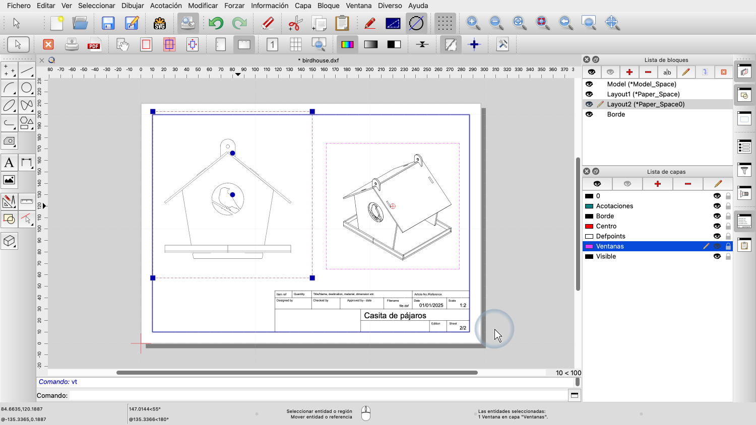 Ejemplo de dibujo: birdhouse.dxf