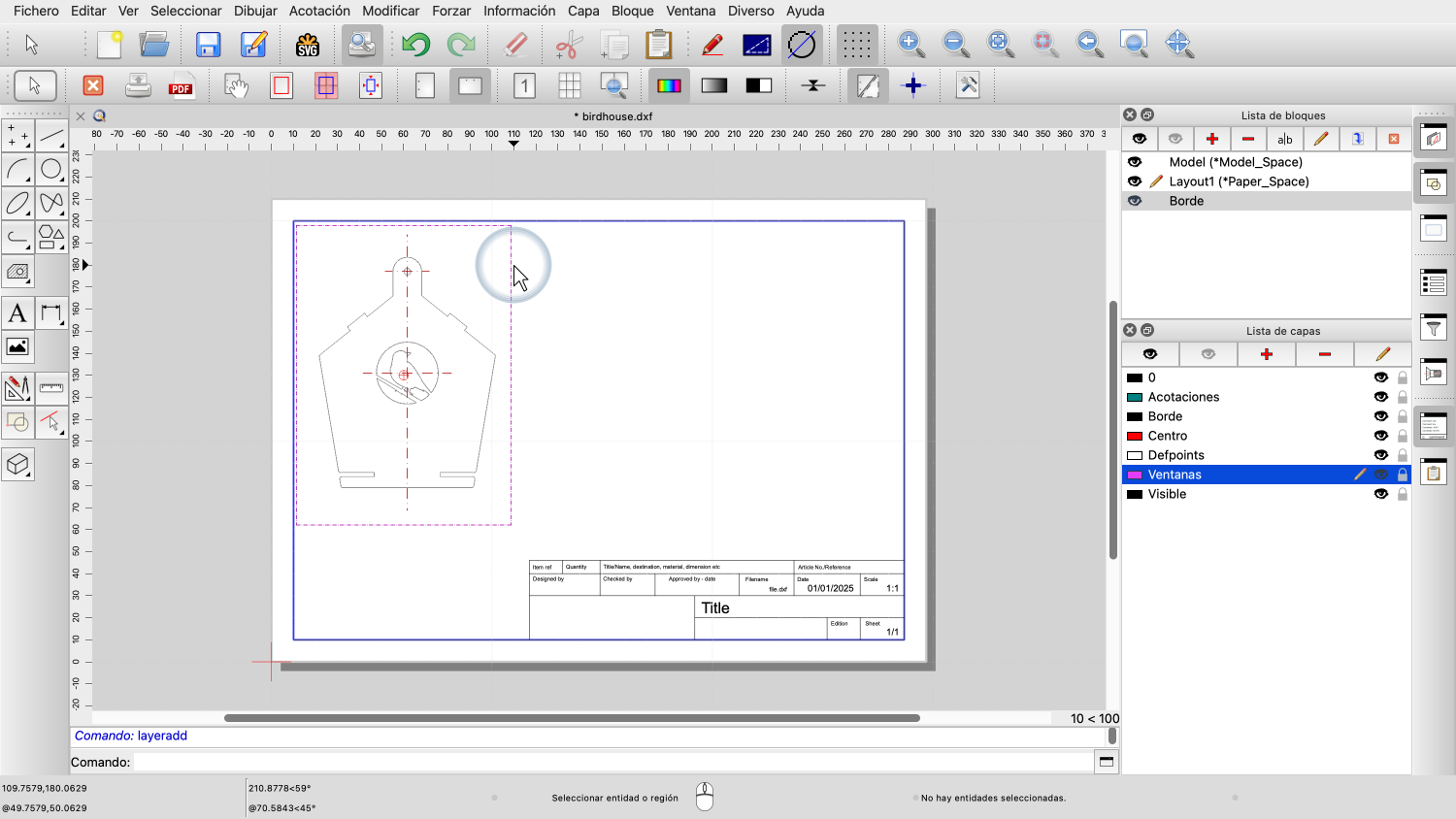 También queremos añadir un borde y un bloque de título con información sobre el dibujo.