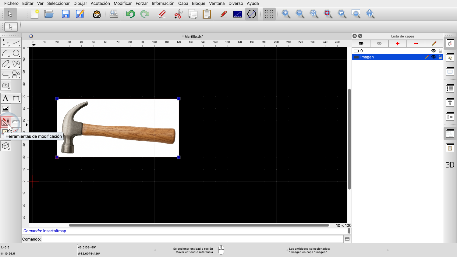 Comenzamos este tutorial insertando una imagen en nuestro dibujo.