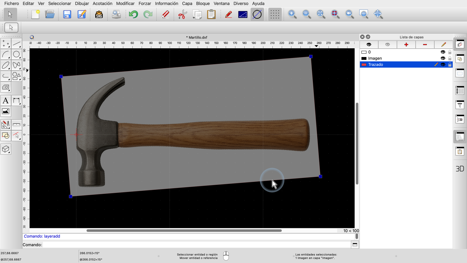 Hemos insertado esta imagen de un martillo y la hemos alineado al tamaño y ángulo deseados.