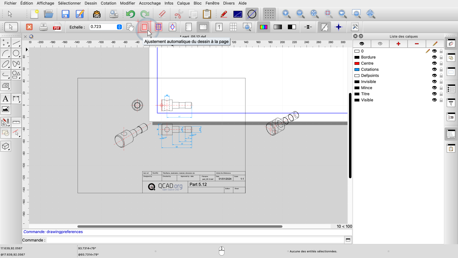 L'ajustement automatique ajuste l'échelle et la position du dessin, de sorte que toutes les entités tiennent sur la page avec les marges que nous avons définies dans les paramètres de la page.