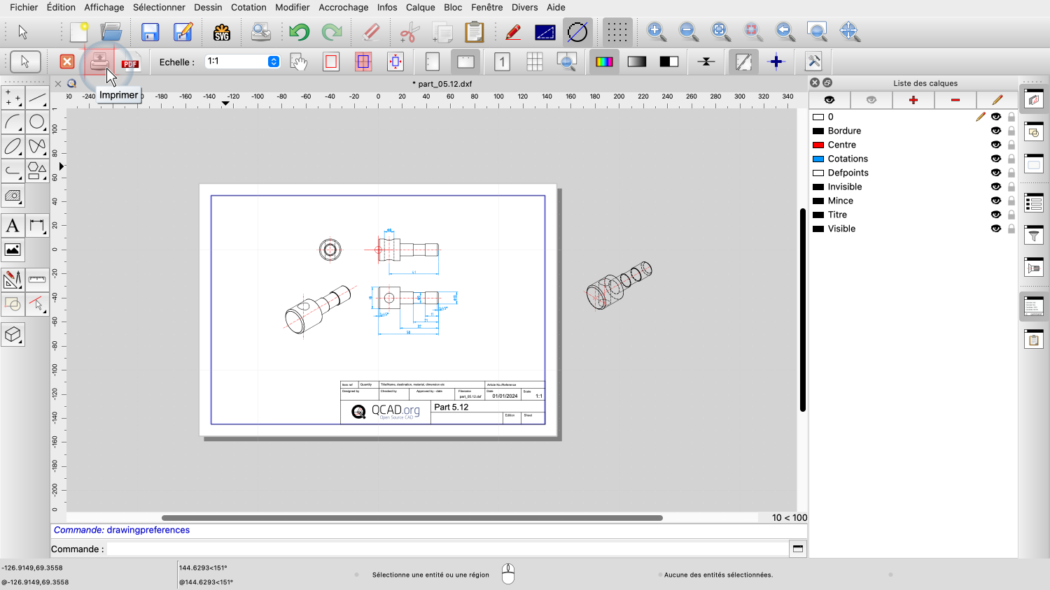 Dans ce tutoriel QCAD, nous allons imprimer un dessin.