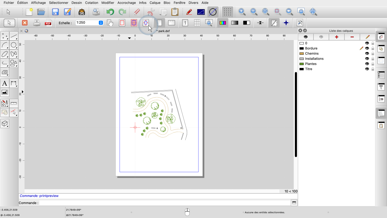 Pour préparer notre dessin à l'impression, nous passons d'abord à l'aperçu avant impression.