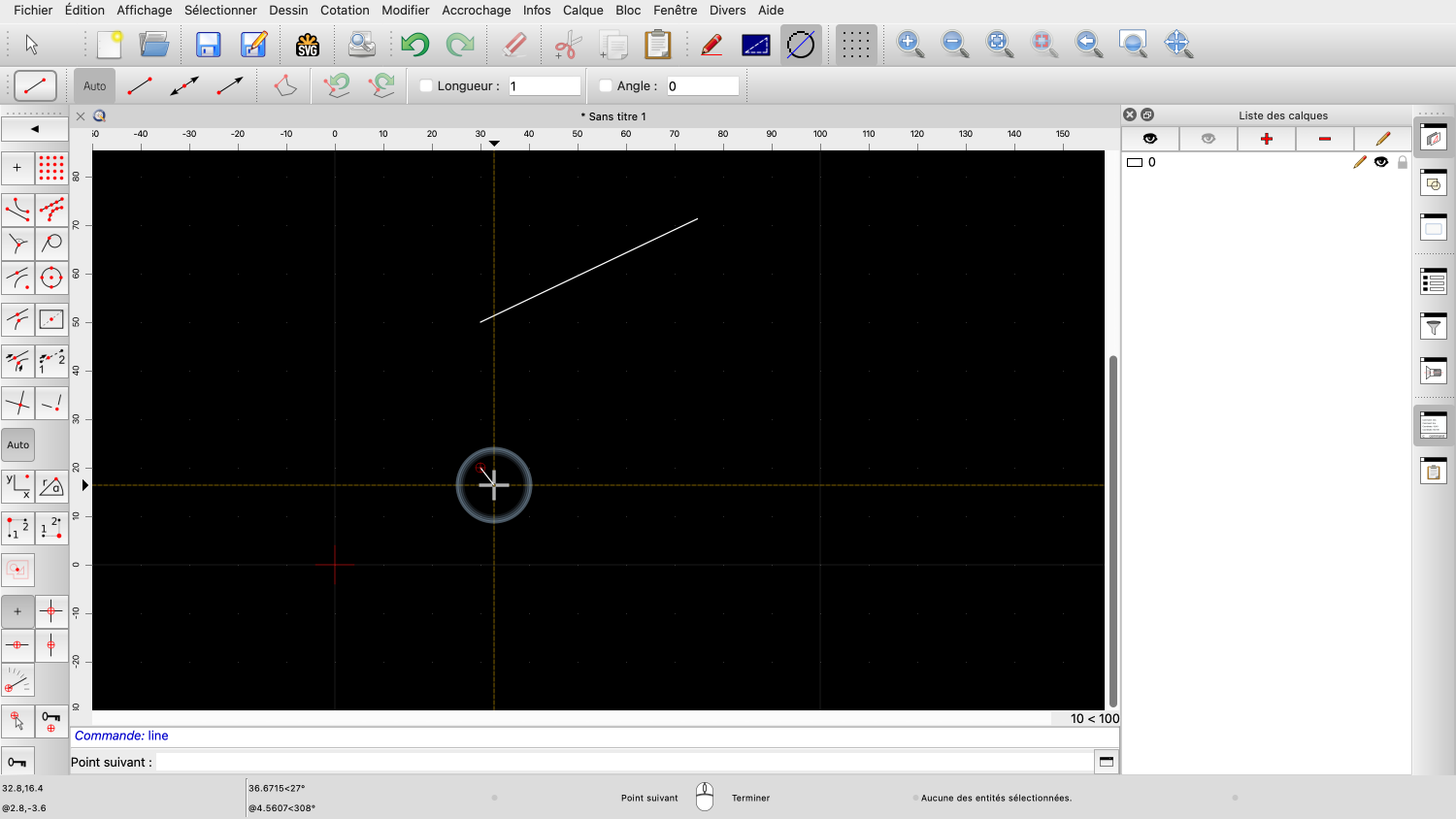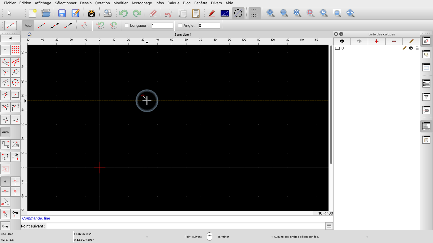 QCAD déplace automatiquement le point zéro relatif à la dernière position utilisée dans le dessin.