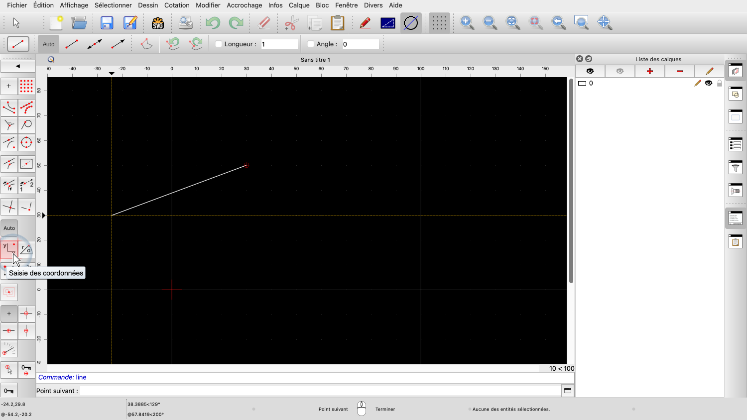 Nous allons maintenant utiliser l'outil ligne pour montrer comment nous pouvons saisir des coordonnées.