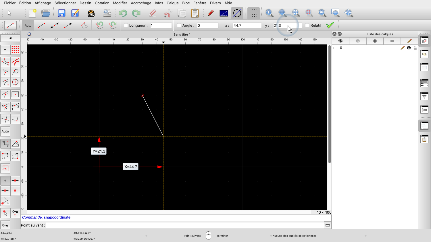Nous démontrons l'utilisation des coordonnées absolues et relatives ainsi que des coordonnées polaires.