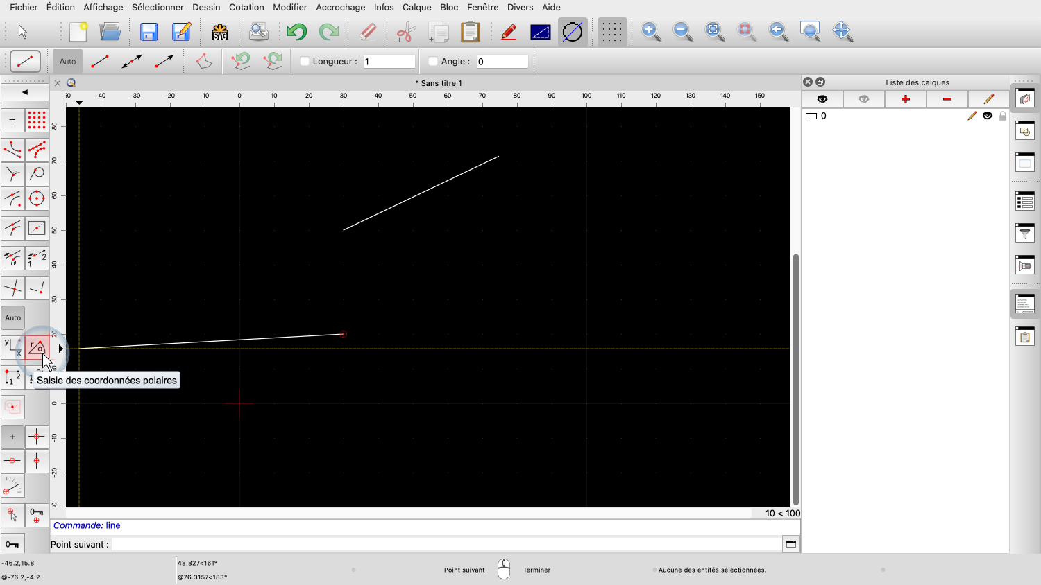 Nous cliquons sur le bouton Coordonnées polaires dans la barre d'outils à gauche.