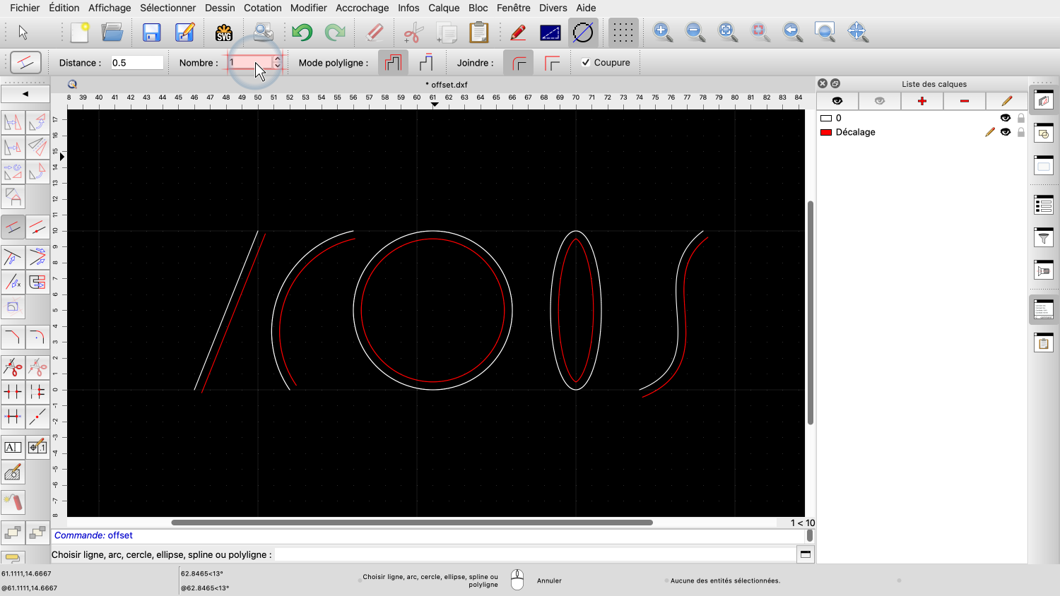 Une utilisation plus avancée de l'outil de décalage consiste à décaler plusieurs contours en même temps.