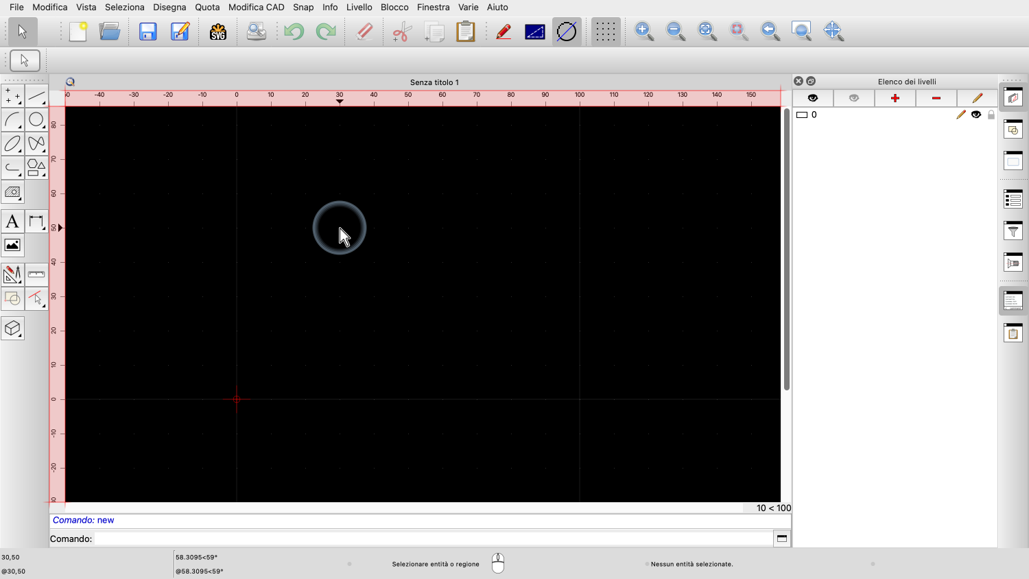 QCAD sposta automaticamente il punto zero relativo nell'ultima posizione utilizzata nel disegno.
