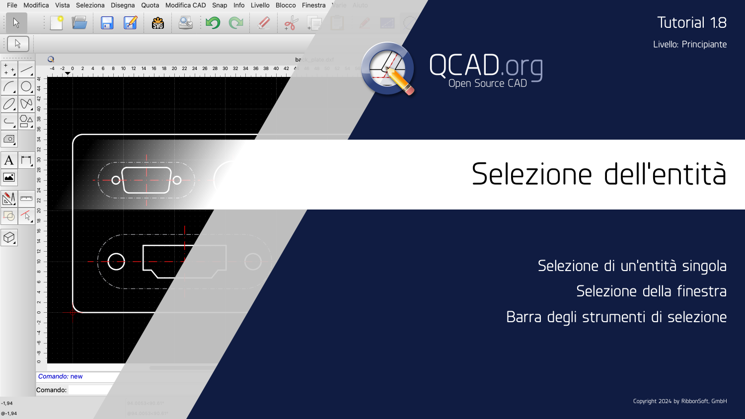 Questo tutorial di QCAD si concentra sugli strumenti di selezione di base di QCAD.