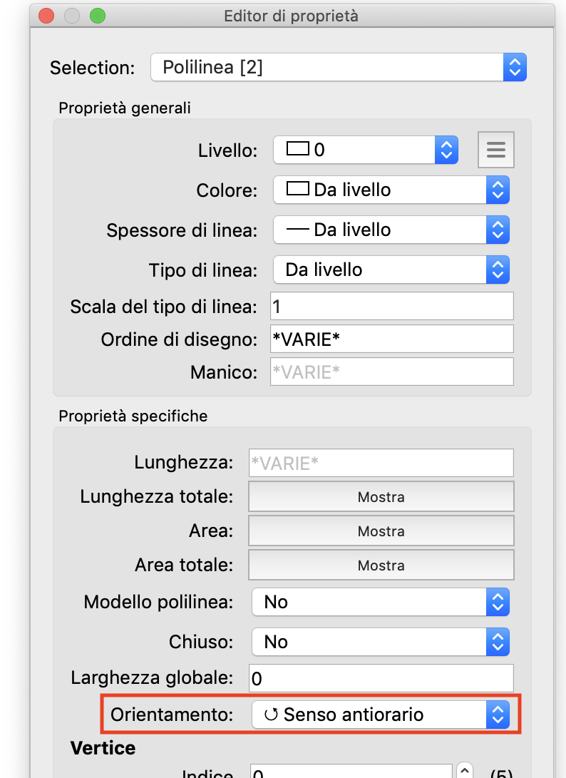 Per le polilinee chiuse, assicurati che entrambe le polilinee abbiamo la stessa orientazione (senso orario o antiorario). Seleziona entrambe le polilinee e usa il property editor per cambiare la proprietà Orientamento o in senso orario o antiorario: