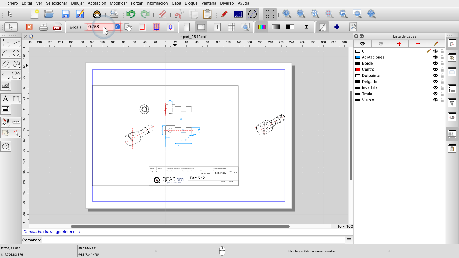 Todo lo que hicimos fue decirle a QCAD cómo queremos escalar y posicionar el dibujo en el papel para la impresión.
