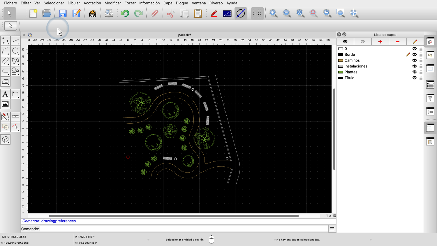 Podemos demostrarlo utilizando el plano de distribución del parque que presentamos anteriormente en el tutorial sobre bloques.