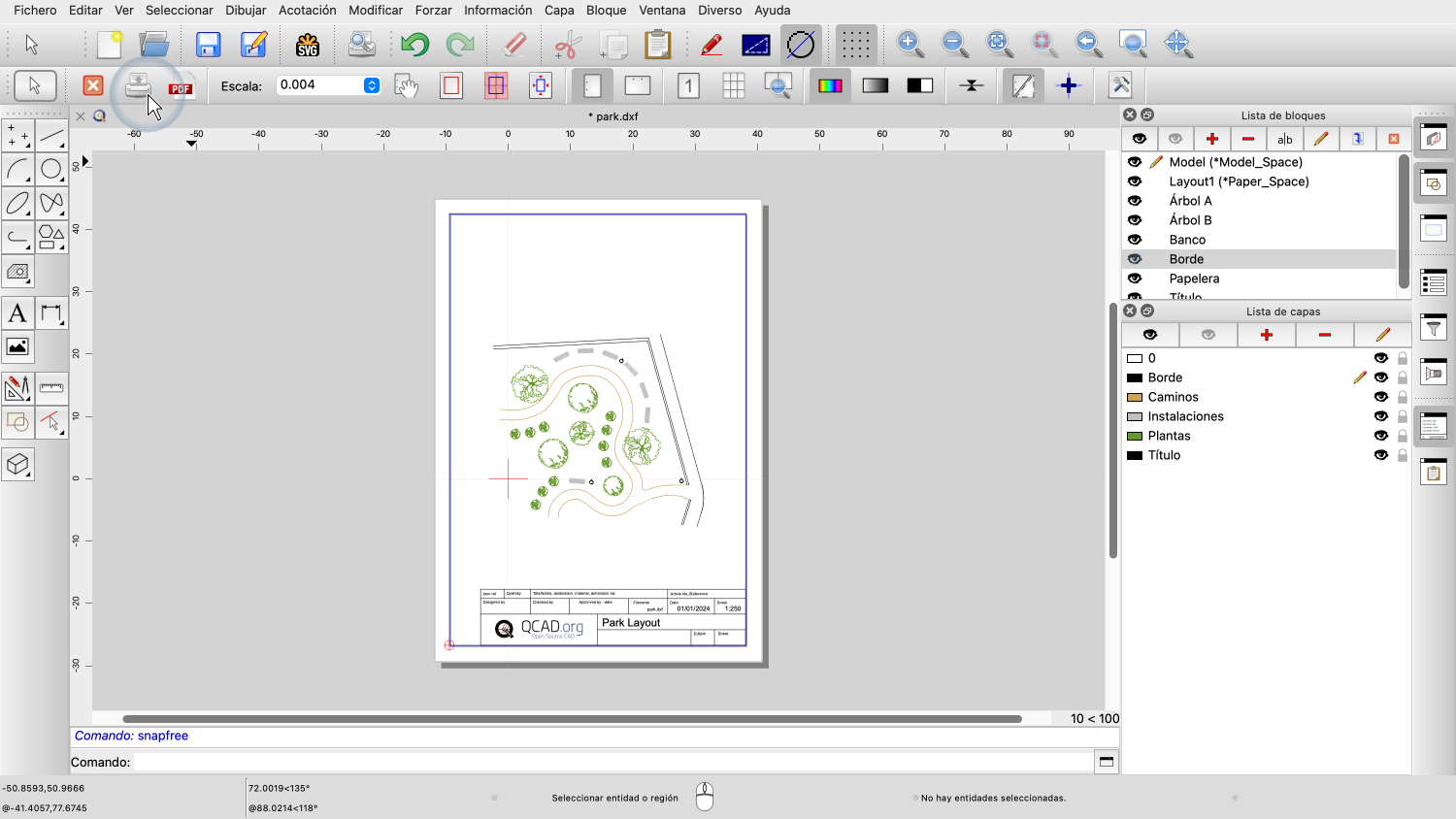 En este tutorial de QCAD, vamos a imprimir un dibujo.