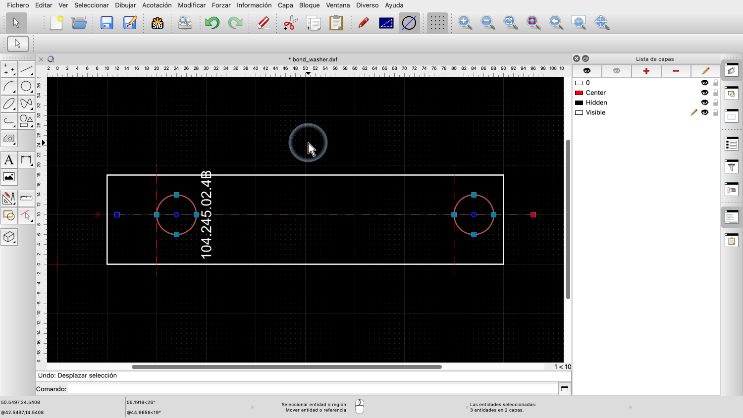 Movemos un poco el cursor del ratón hasta que veamos que estamos arrastrando con el ratón las entidades seleccionadas.
