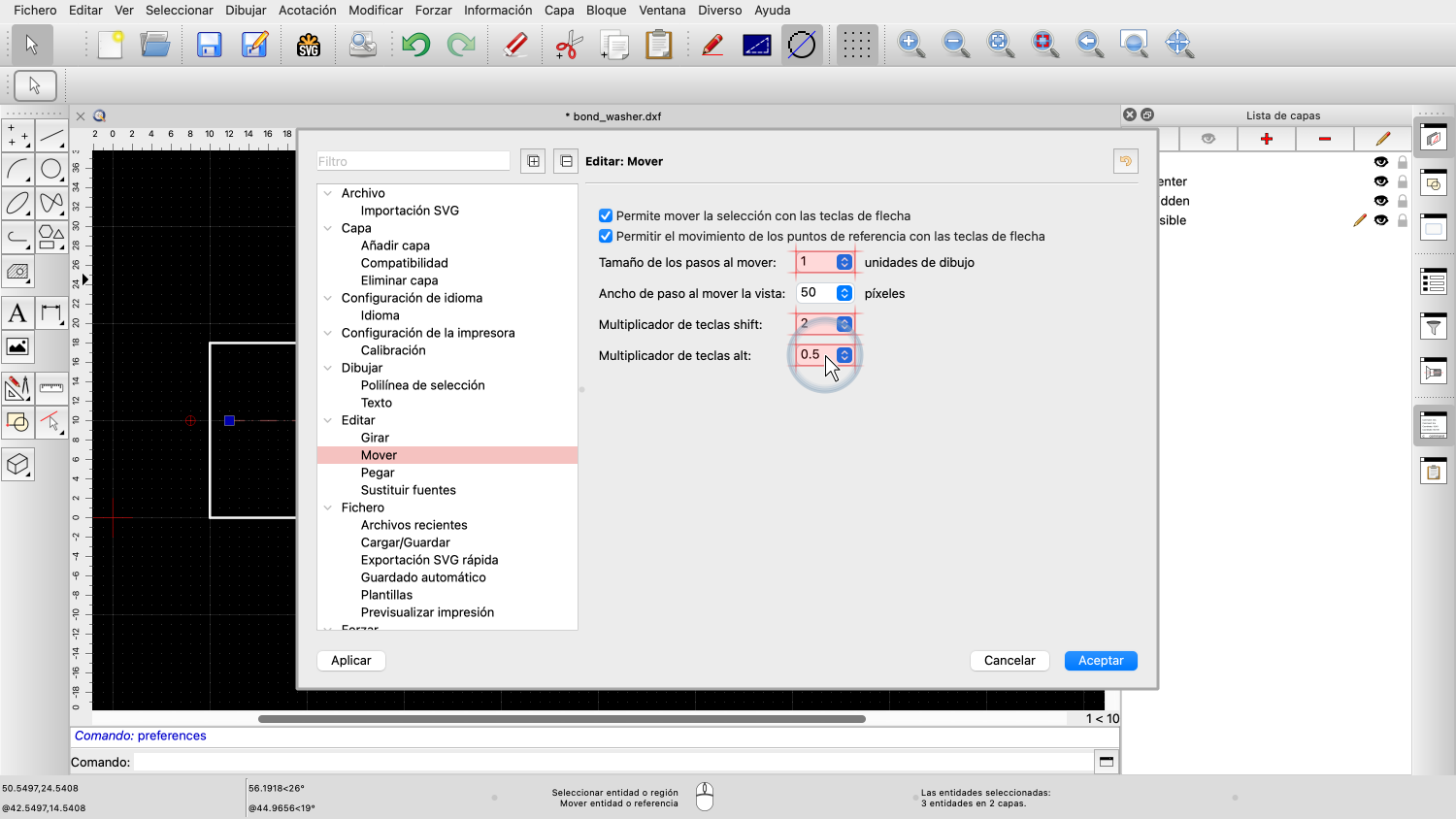 También podemos configurar factores para que se apliquen al mantener pulsada la tecla shift o alt junto con las teclas de dirección.
