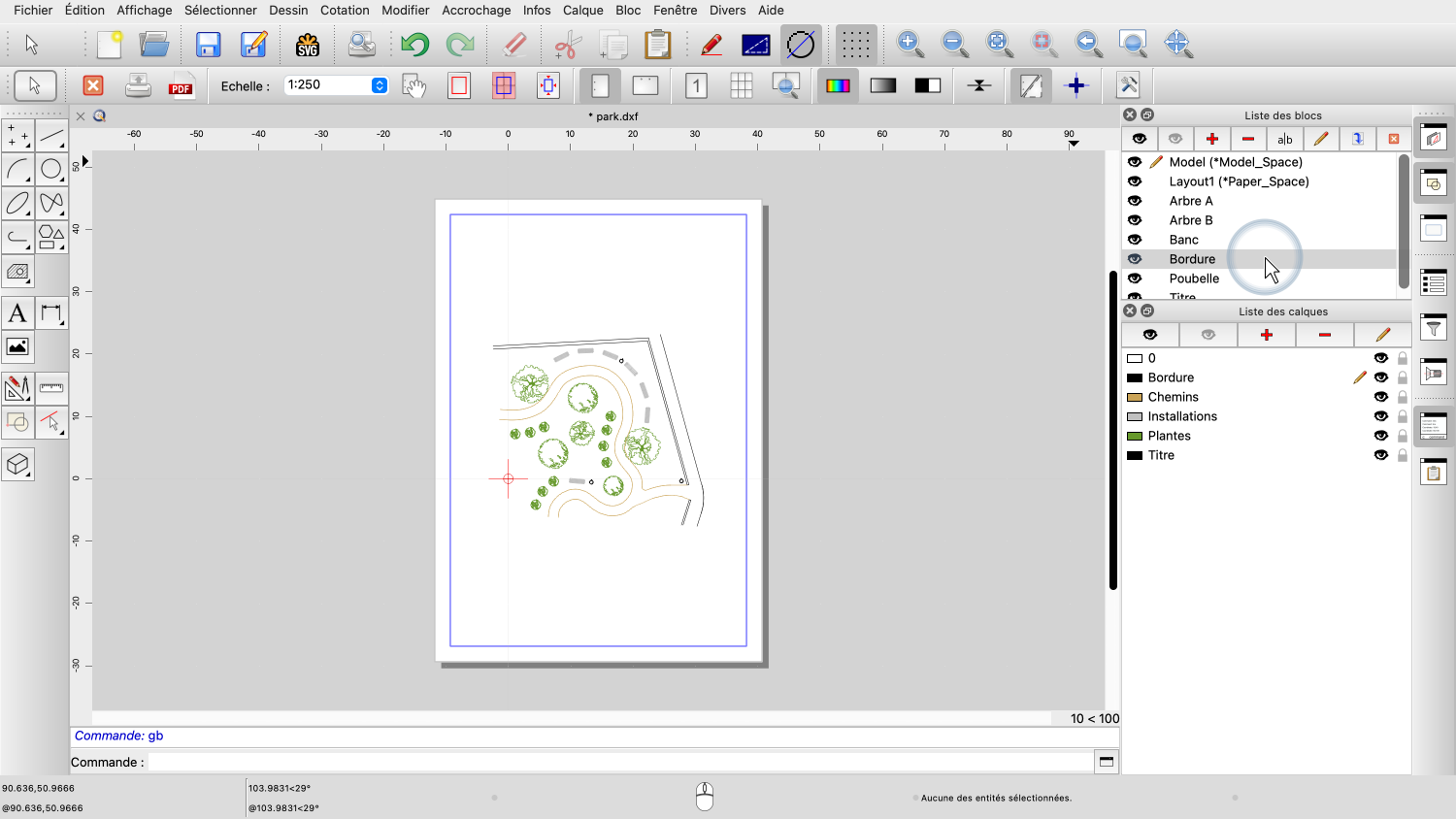 Nous pouvons le démontrer en utilisant le plan d'aménagement du parc présenté précédemment dans le tutoriel sur les blocs.